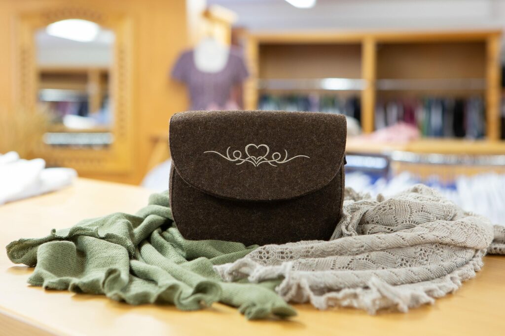Unsere verschiedenen Taschen aus Leder, Filz oder Stoff, lassen sich auch zur Tracht sehr gut kombinieren.