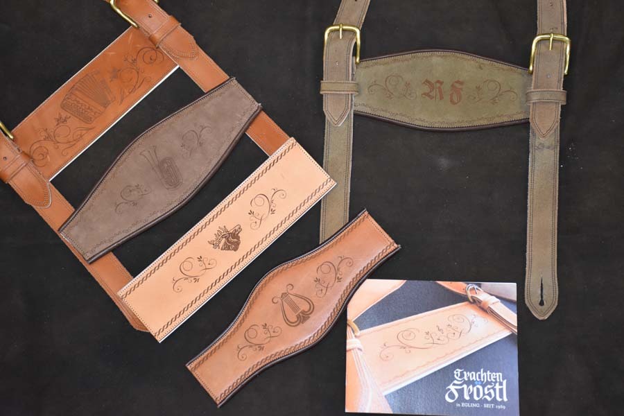Bei uns erhalten Sie die perfekt zur Lederhose passenden Hosenträger, beispielsweise für Vereine. Wir fertigen diese in unserer hauseigenen Werkstatt eigens für Sie an. Zudem verarbeiten wir Ihre handgestickten Gobelinvorlagen zu einzigartigen Hosenträgern. Seit Anfang 2020 stellen wir Hosenträger mit einem von Ihnen individuell gestalteten Design, Ihrem eigenen Logo, Familienwappen oder Zunftzeichen her, welches wir in die von Ihnen gewünschte Leder-Farbe lasern. Ein tolles Accessoire, welches sich auch als ein einzigartiges Geschenk sehr gut eignet.